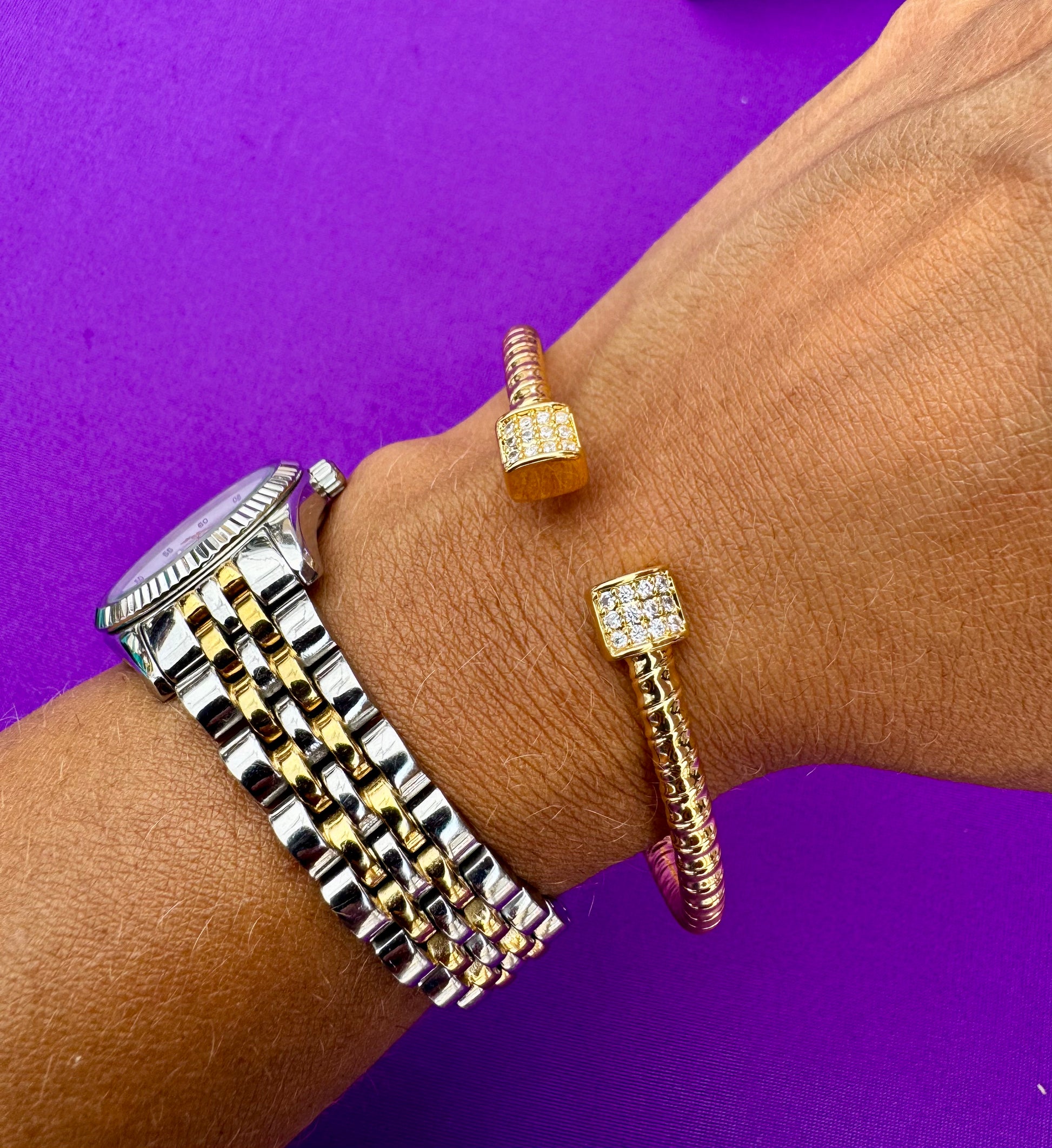 JENNY GOLD CRYSTAL OPEN CUFF BRACELET